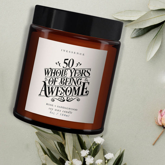50th Birthday Aromatherapy Candle Gift: Natural Soy Wax, Essential Oils