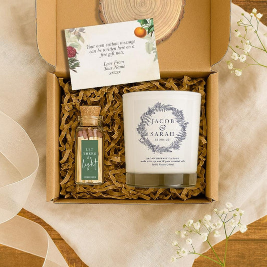 Personalized Wedding Candle Gift Set | Hand-Poured Soy Wax Candle With Matches & Luxury Box