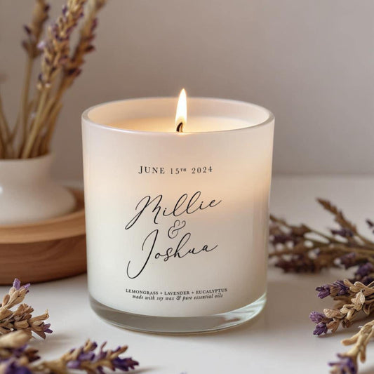 Personalised Wedding Candle – Natural Soy Aromatherapy Candle With Custom Monogram & Gift Box