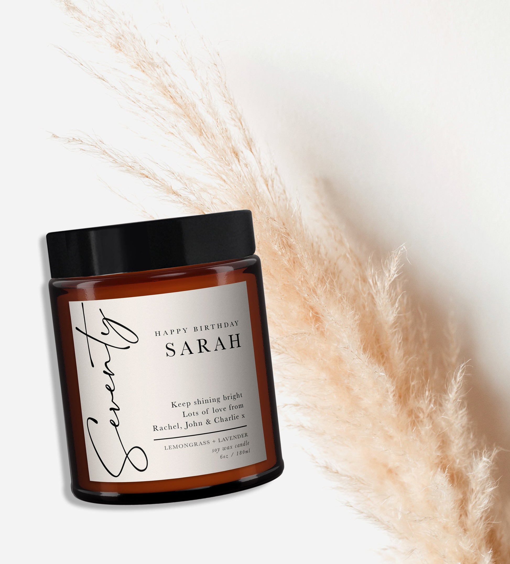 Say Happy Birthday with a special personalised pure essential oil candle. Detailed with a stylish calligraphy design and personalised message, this keep sake gift is guaranteed to get an 'aww and a smile.'