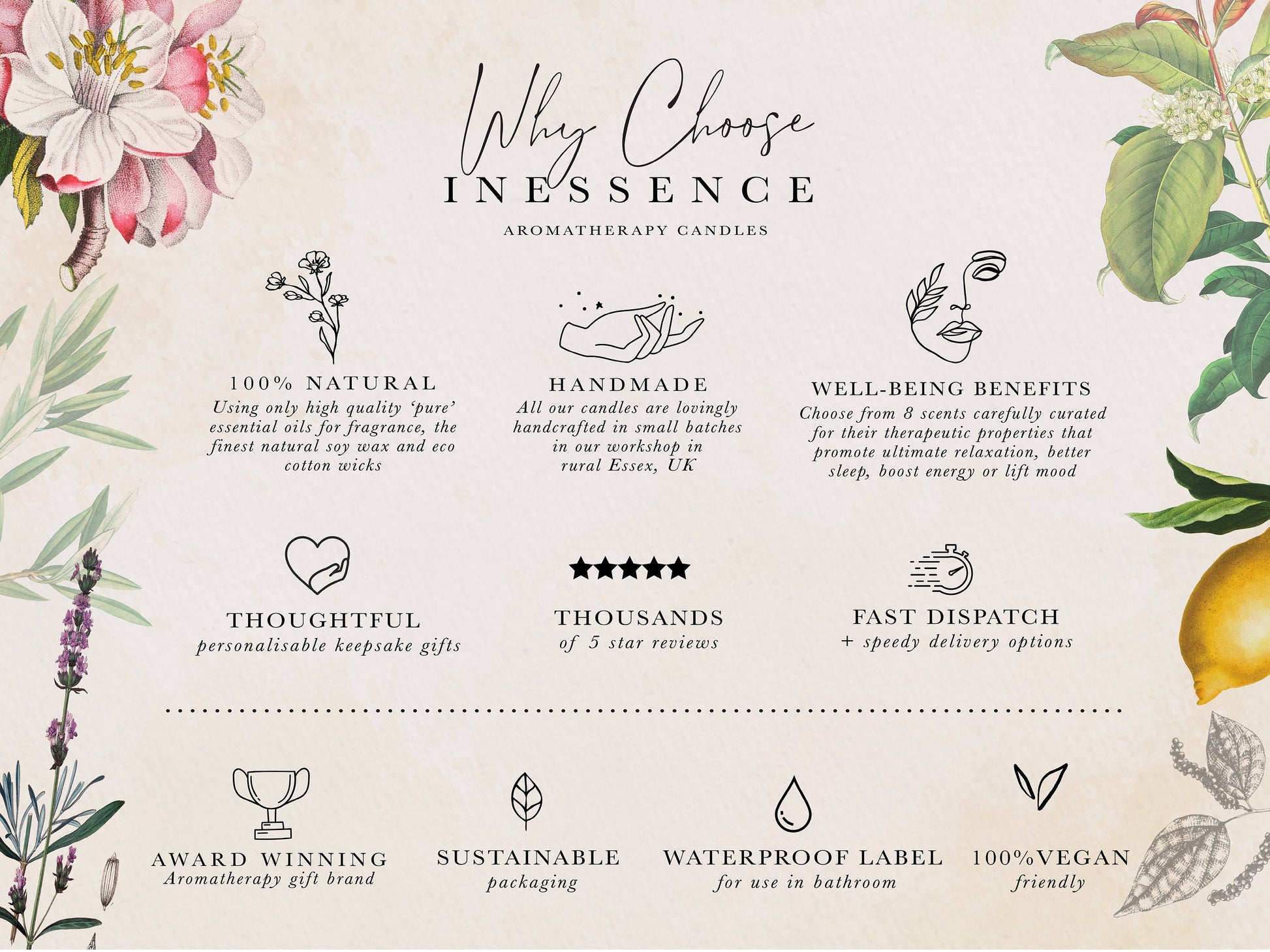 Inessence Candles offer passionately handcrafted, all natural personalised candles for the ultimate thoughtful gesture for all occasions and milestones.