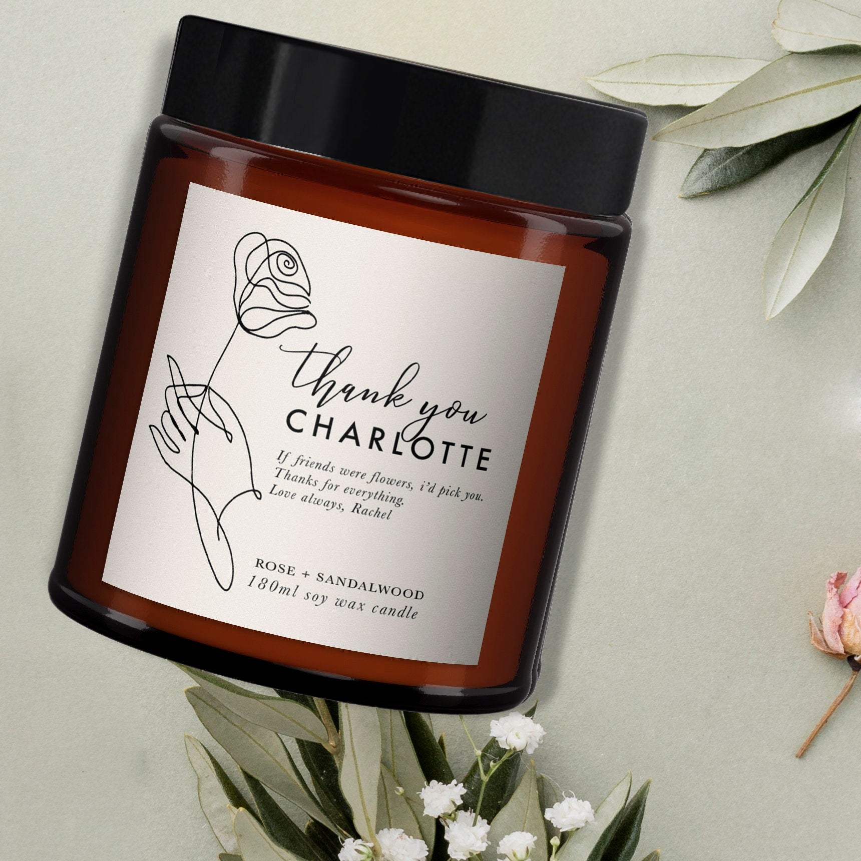 Personalised Thank you Flower Pure Essential Oil Candle